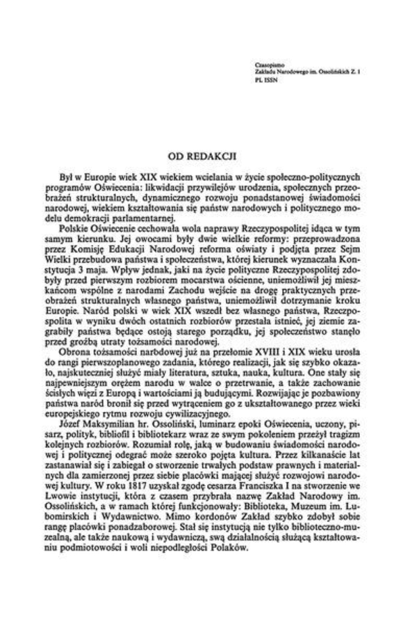 Czasopismo Zakładu Narodowego imienia Ossolińskich. Zeszyt 1