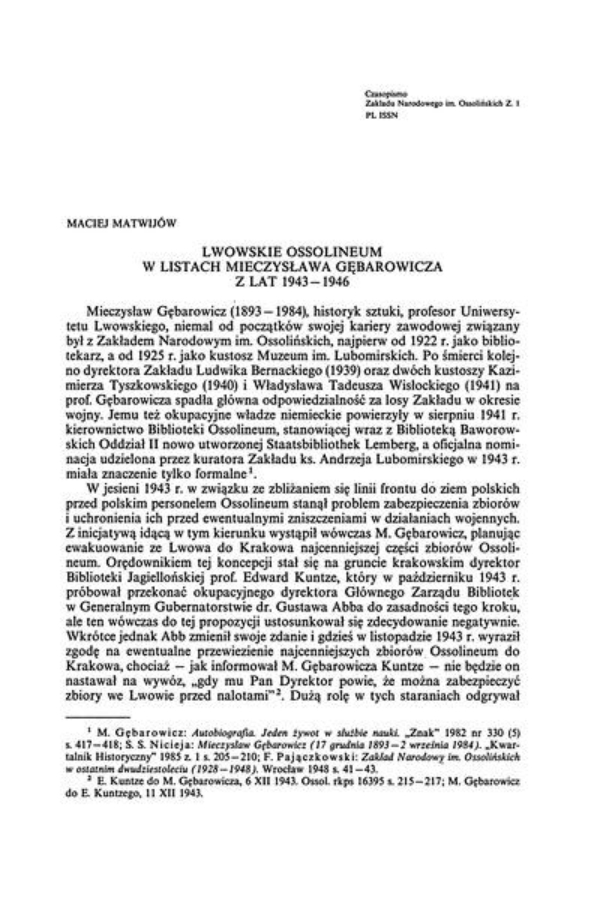 | Cz-ZNiO-001-10 / Lwowskie Ossolineum w listach Mieczysława Gębarowicza z lat 1943-1946 / Maciej Matwijów | 24 cze 2025 |