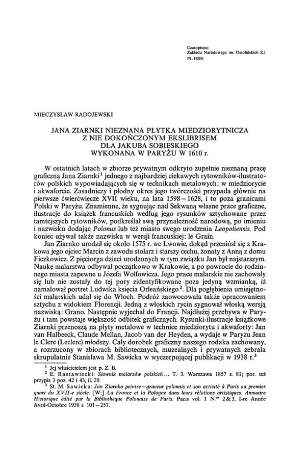 Czasopismo Zakładu Narodowego imienia Ossolińskich. Zeszyt 1