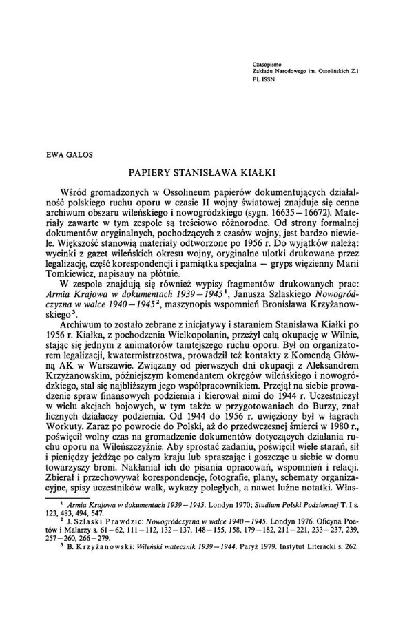 Czasopismo Zakładu Narodowego imienia Ossolińskich. Zeszyt 1