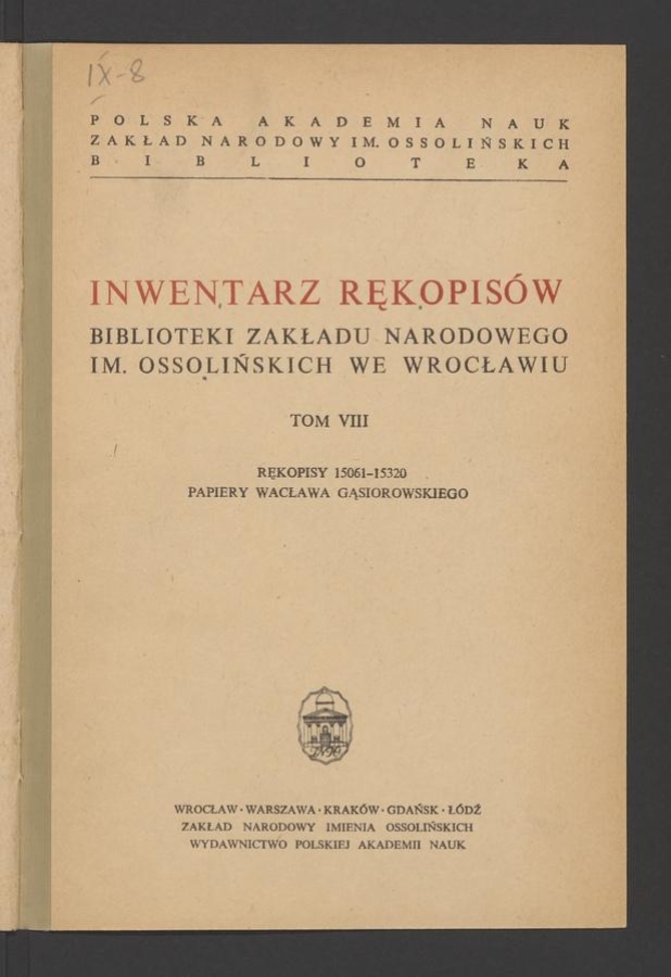 Zakład Narodowy imienia Ossolińskich ; Wydawnictwo Polskiej Akademii Nauk